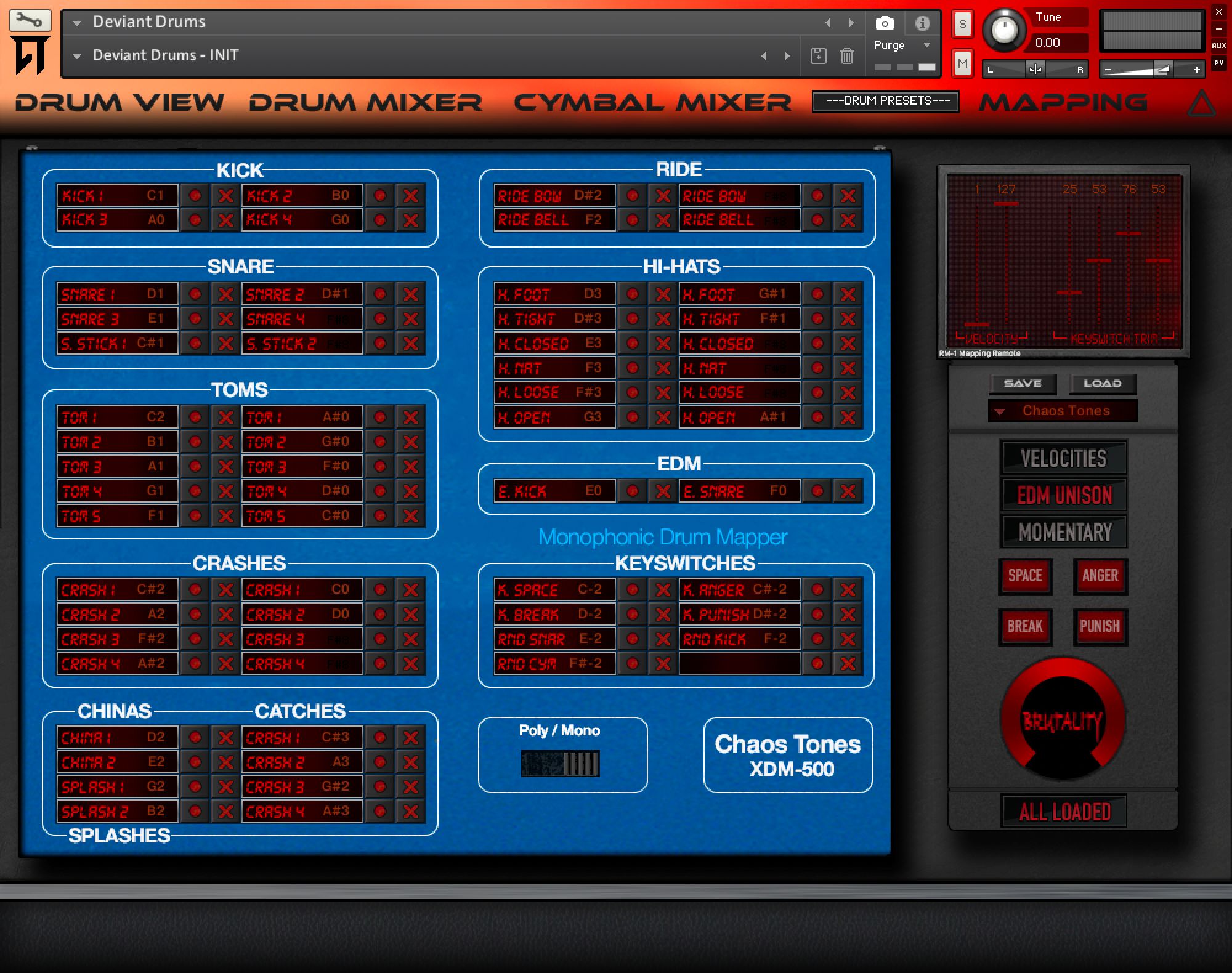 The current build of Deviant Drums comes with over 70 snapshots (presets) that range from familiar and popular Rock and Metal sounds, to tones that chart new territory.